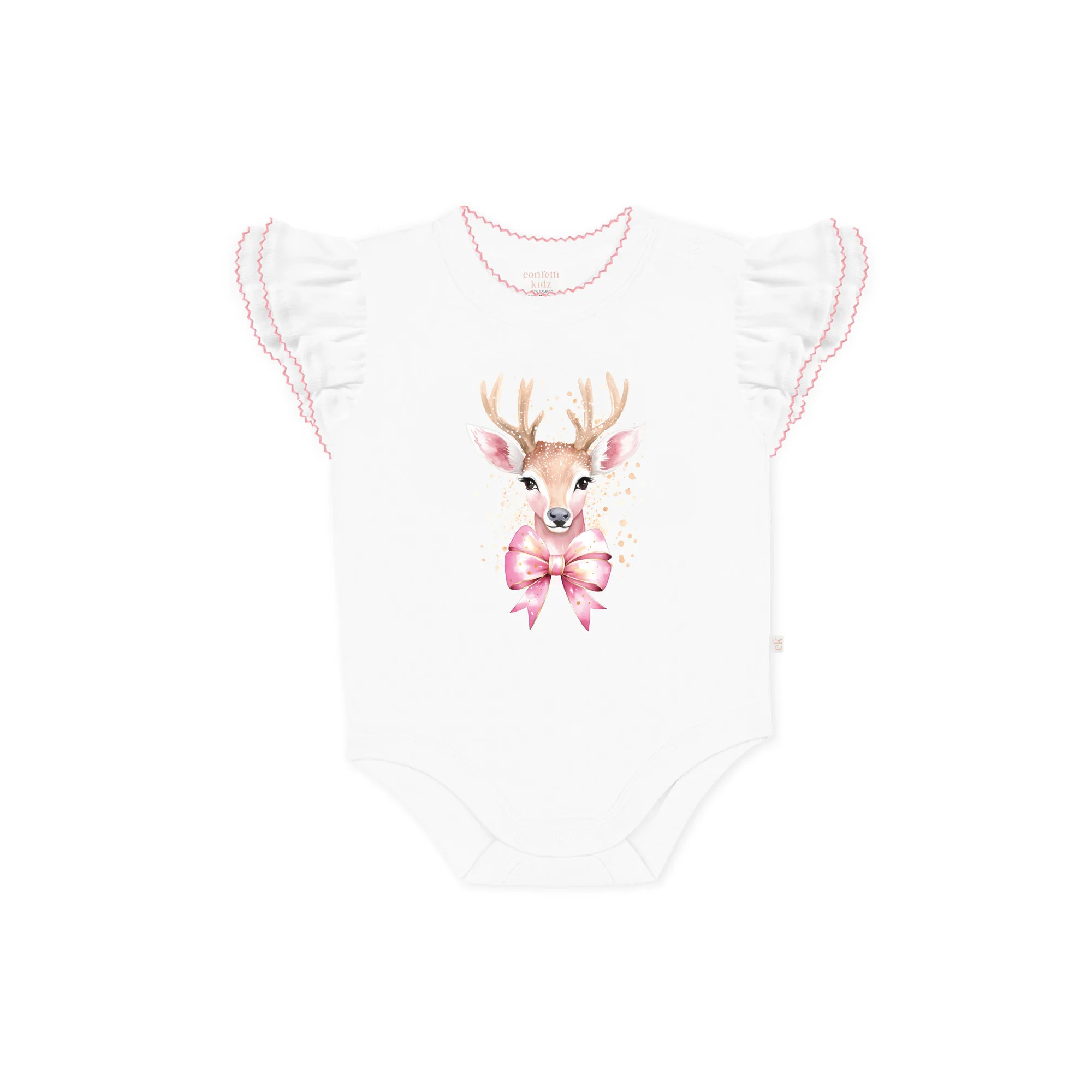 Introducing our Golden Reindeer bodysuit, featuring festive splashes of gold and pink for a whimsical touch. Pair it perfectly with our Pink Sparkly Tutu to create an adorable holiday outfit that’s both enchanting and festive.