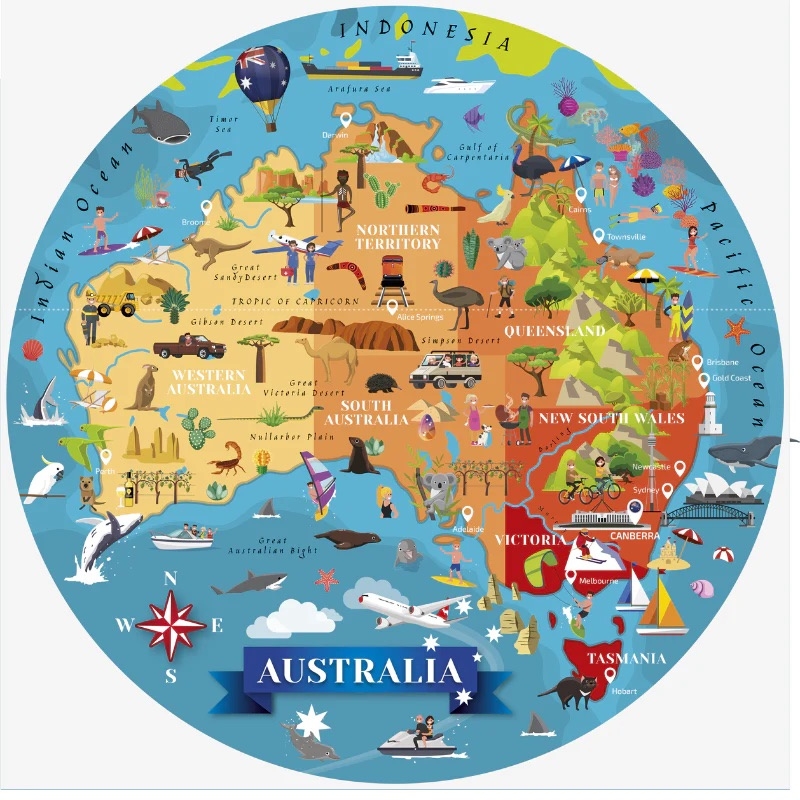 The puzzle is a great way to view where key natural and man-made attractions are around Australia. The complementing booklet covers key highlights from each state as well as fun facts about our culture and key inventions that we can be proud of.