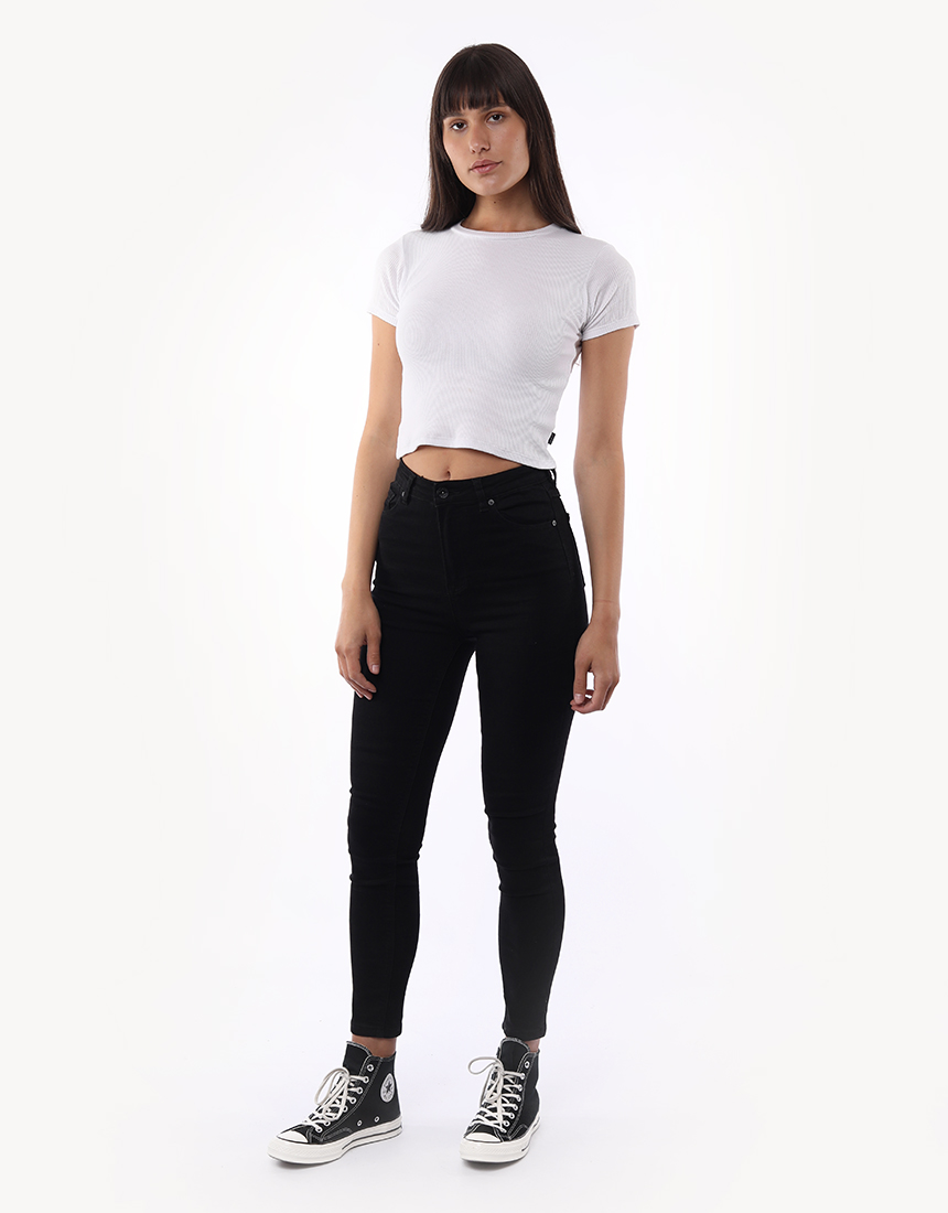 The staple jean features a high rise, a flattering fit through the waist, hip and leg and a black wash. Let this be your everyday jean!
